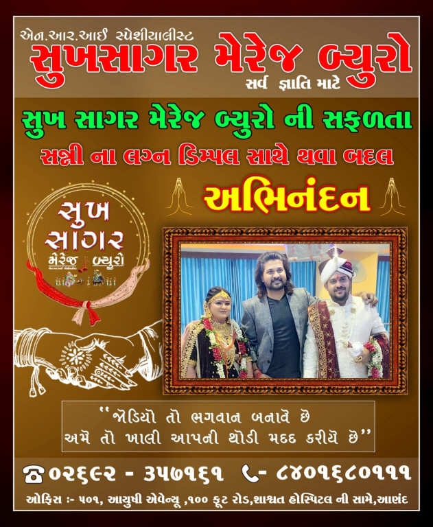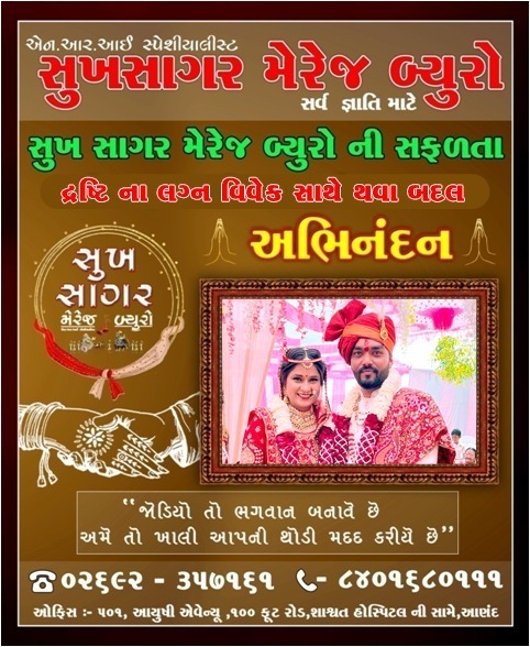 Sukh Sagar Marriage Bureau is the best marriage bureau. I have found the person I like in Sukh Sagar Marriage Bureau, so we are thankful to Sukh Sagar Marriage Bureau.
