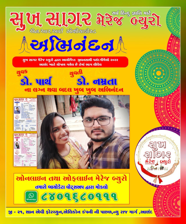They say marriages are made in heaven and we at Sukh Sagar Marriage Bureau, are trying to bring together that someone who is made for you. We welcome you all to celebrate with us the Success Stories of the innumerable married couples who have found their dream partner through Mega Matrimony. We wish them the very best for a happy and successful married life.